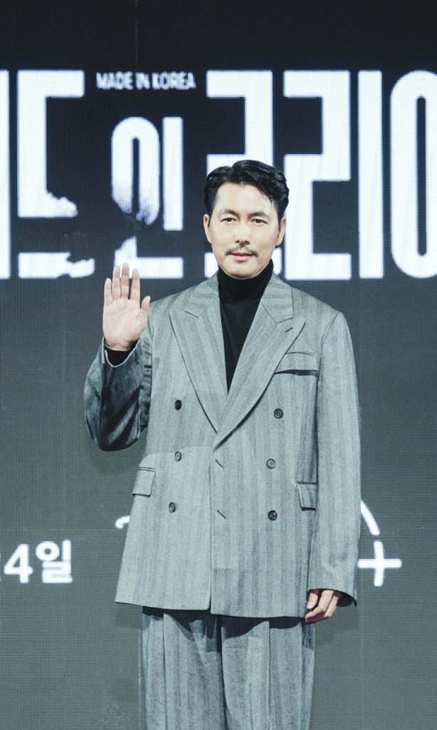 For Jung Woo-sung, it was the “bold imagination” of the story that attracted him to the project. “It gave me a lot of courage as an actor,” he shares, “because we can really explore” in that kind of creative working environment. He plays Jang Geon-yeong, a “dogged prosecutor” who becomes obsessive in his pursuit of criminals and Hyun Bin’s Baek Ki-tae gets caught in his crosshairs.