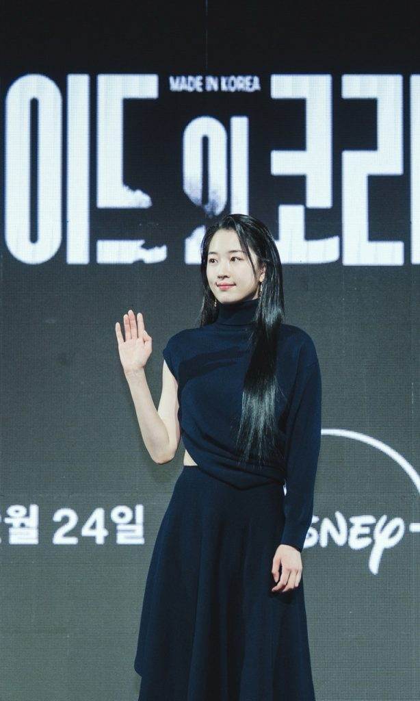 Director Woo Min-ho and Hyun Bin were asked about working together again since Harbin. Hyun Bin shares that he has “an immense amount of trust” with Director Woo, and that working with him has proven that “he can bring out a different side of me” as an actor. Director Woo is quick to point out that “Harbin was about a real person” whereas Made in Korea is purely fictional so he says that “we could play more” in the show. He talks about having a collaborative spirit on set that all the actors got to “collaborate freely and really play on set.”